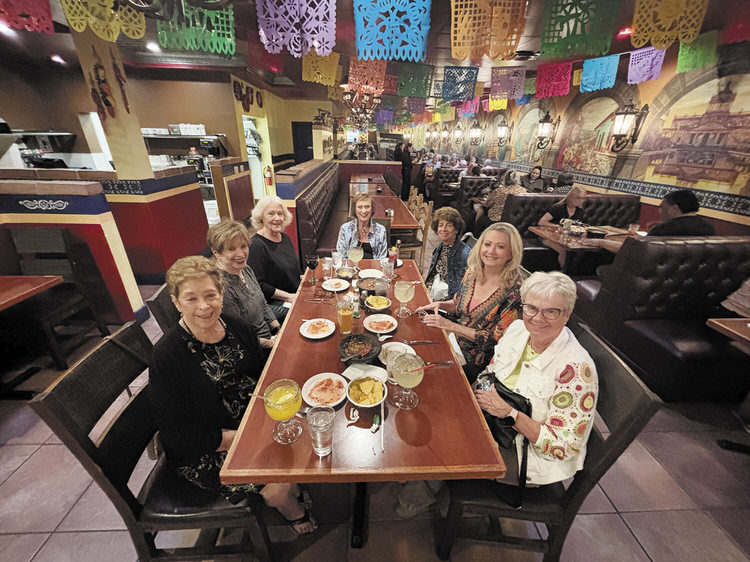 WOOO women enjoying First Saturday Happy Hour at Guadalajara: Libby Cohen, Sheila Burke, Pat Rourke, Geri Meyer, Judy Rogoway, Dee Berisha, Wanda Buehler