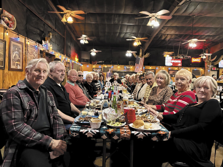 It was here on Jan. 22 at 5 p.m. that 22 members of the British Club met for a delightful western evening. As they looked around, they were reminded of their younger days living in Britain watching those grand, old, nostalgic cowboy movies at the matinees or on TV. They feasted on delicious choices of steaks, baby back ribs, chicken, shrimp, catfish, cowboy beans, baked potatoes with all the fixings, and fresh salad, etc. Enjoying the camaraderie of fellow members, they all agreed it was a very enjoyable way to spend an evening.