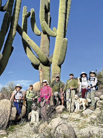 In addition to dog-friendly hikes, the club also offers historical hikes, mural walks, some walks/hikes with a stop at a restaurant for lunch, and various levels of hikes from D to A (easiest to most difficult). A new outing is a tour of the Pima Air & Space Museum. In addition, the club offers multi-day hiking trips.