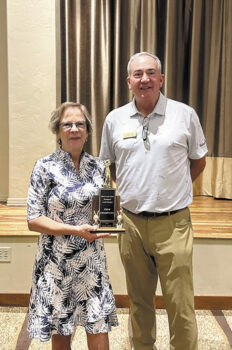 ← Left to right: Club Champion Maria Miller and PGA golf professional Wayne Clark