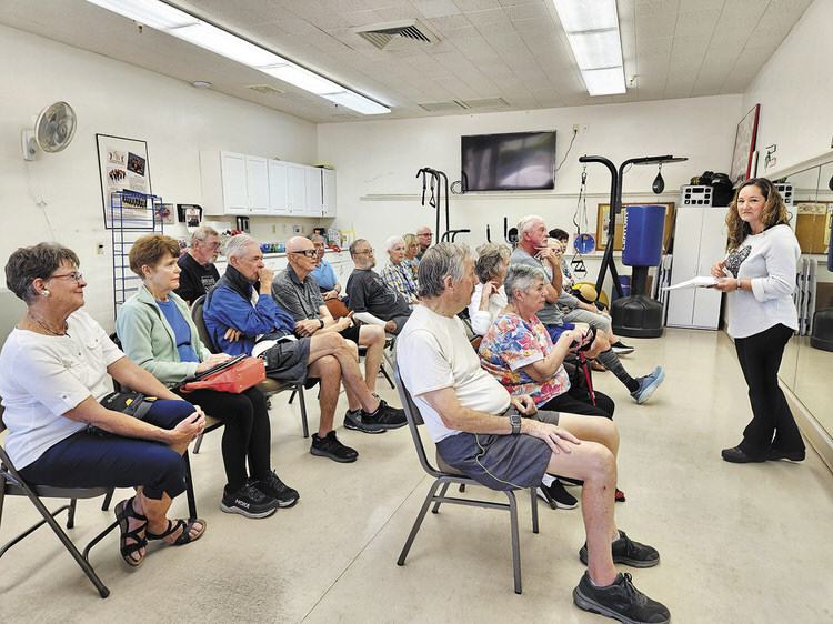 In this type of class, there are two purposes: 1) to build muscle mass to recover lost strength and functions, and 2) to counter the neurologic deficits that occur and to prevent the progression of the disease symptoms. We do this with weighted movements, education at every session, and sharing experience, strength, and support for one another—without whining!