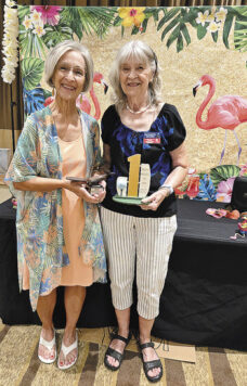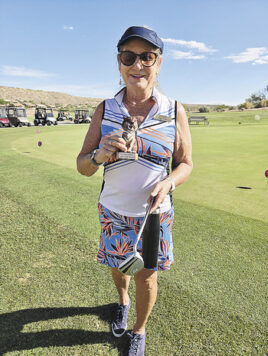 Thoughts of Hawaii suggest the feel of ocean breezes and sounds of the surf. When the MountainView Lady Putters (MVLP) blend together thoughts of Hawaii with goofy golf in the SaddleBrooke high desert, unexpected entertainment awaits. On Aug. 11, when the temperature was nearly 100 with no ocean breeze, or even a mountain breeze, and no sound of the surf, MVLP’s Goofy Golf Committee provided an added dose of fun to Monday morning putting. Women putters appeared in Hawaiian dresses, grass skirts, coconut bras, or their best interpretation of Hawaiian attire to get in the spirit of the event.