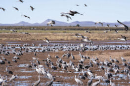 In December, eight members of the Photography Club took a trip to the Whitewater Draw Wildlife Area, about 125 miles southeast of SaddleBrooke. Managed by Arizona Game and Fish, this wetland site is a wintering area for thousands of sandhill cranes, snow and Ross’s geese, and an abundance of other birds and Arizona wildlife. It’s stunning to see the sky filled with these large birds as they take off in the morning and then return later in the day. Some of the group stayed overnight in Bisbee, some in Douglass, and a couple camped out.