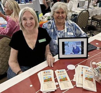 The SaddleBrooke Singles Club table was a busy one at the recent Recreation and Activities Fair at the MountainView ballroom. Vice President Laurie O’Toole and Anne Bowen, secretary, found that some people were drawn to a digital photo frame looping photos featuring group dinners, parties, and happy hours, while others were eager to take a membership brochure.