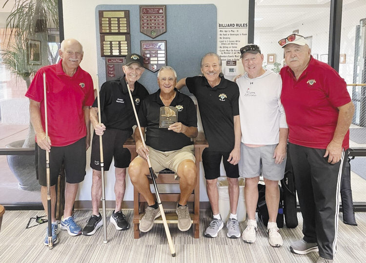 Pool Players of The Brooke (PPB) would like to thank the Sun City Oro Valley (SCOV) Billiards Club, Robert Dufur, and SCOV’s billiards team for their pool table prowess, camaraderie, and friendly competition. Another big thank you goes out to Tony Cardillo, PPB’s Travel Team captain, for organizing this event. On Nov. 8 the PPB Travel Team ventured down to SCOV’s Billiards Room for an 8-Ball Team Challenge. Tony “The Snake” Cardillo was the tournament director. We were competing on two 9-foot Diamond Pro-Am pool tables and two 9-foot Brunswick pool tables for temporary ownership of a traveling bronze plaque that has been in PPB’s possession since November of 2021. Our team was made up of four two-player teams, and SCOV also had four two-player teams. Our two-player teams were drawn from the following list of PPB cueists: Fred “The Baker” Dianda and Phelps “Montana” L’Hommedieu, Tony “The Snake” Cardillo and Mike Collins, Lowell “8-Ball” Hegg and Joe “Ball Breaker” Vidmar, and Randy “Nice Try” Smith and Jack “Crash” Hoverter. A big welcome to Mike Collins as he made his initial appearance on the PPB Travel Team. Welcome, Mike!