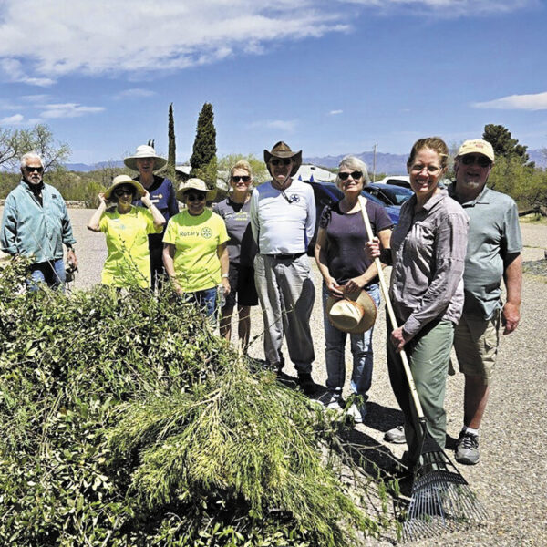 The sun rose balmy and bright over the Triangle YMCA Ranch Camp on April 12 as SaddleBrooke Sunrise Rotarians, along with members from other local clubs, rolled in to help prepare the grounds for the upcoming summer season. Led by the Camp’s Executive Operations Director Wes Long and his team, this year’s annual workday began with a hearty breakfast in the main lodge followed by a quick huddle to identify work assignments and arm volunteers with tools. Teams then broke off to tackle a variety of tasks, mostly involving landscaping cleanup and minor painting. Woven-in weeds, tangled trees, and bristly bushes threatened to thwart the teams’ efforts, but the tenacity of these determined individuals ultimately won out and turned many of the “to-dos” into “dones.”