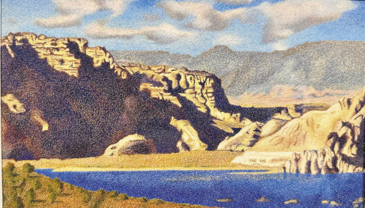Award of Excellence: Laurie Moar, Morning on Lake Powell (excellent work in a very difficult medium, colored pencil)