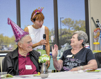 The Fun with Friends team planned another engaging birthday celebration for members of Senior Village on March 19 at the SaddleBrooke One Arts and Crafts Room. Volunteers Mona Sullivan, Marcia Kovac, and Debbie McGeehan collaborated with Sally Teusch and Chelsy Brougher for laughter, singing, and games. Twenty attendees sang along with David Wemmer and Susie Payne as they performed Neil Diamond’s “Sweet Caroline” and the Beatles tune, “I Want to Hold Your Hand.”