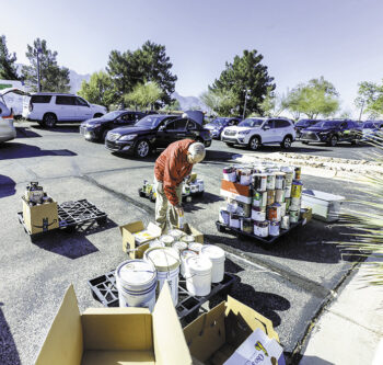 SaddleBrooke responded enthusiastically, with about 360 residents delivering their goods to the event, which is supported annually by Suburban Miners, Tucson’s premiere recycling company. For a small fee, Senior Village volunteers helped unload vehicles, and Suburban Miners hauled away more than five tall pallets of unwanted paint, pest control chemicals, and cleaning supplies in addition to old computers, printers, TVs, small kitchen appliances, and orphaned cords.