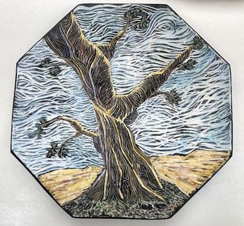 Since then, club members have continued to learn and create. More experienced members help eager beginners, all united by a shared enthusiasm for the craft. Every member brings their own creative vision to the table, resulting in a vibrant array of pieces from sophisticated sculptures to whimsical outdoor totems, to beautiful mugs and bowls for daily use. The process begins in the studio where members experiment with different clay bodies, glazes, and techniques. Beyond the technical aspects of working with clay, the social dynamics within the club are an essential part of the experience. In addition to formal workshops and demonstrations, members come together in the studio to assist, collaborate, provide feedback, inspire one another—and sometimes to commiserate! This year, special workshops presented by professional clay artists Andree Richmond (Tucson) and Carolyn Bulkley (Oregon) challenged participants to get out of their comfort zones to try new forms and techniques.