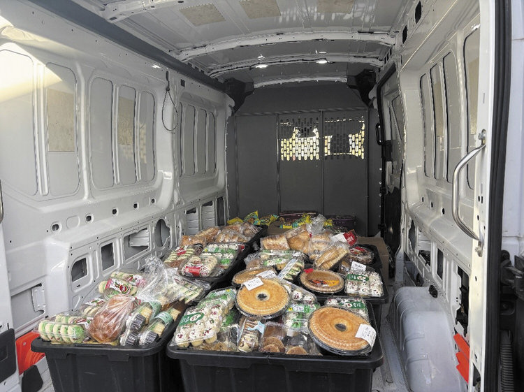 On most mornings when the food bank is open, volunteers pick up the donated bakery items for distribution to food bank clients. (Photo by Tom Jensen)