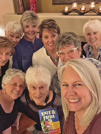 Book Club members: Back row: Dee Zellinger, Suzanne Donlan, Nancy Hanna, Lea Stocks, Ruth Leman, Cheryl Fay; front row: Sue Colby, Midge Mollenkopf, author Kim Fay; members not able to attend: Pat Broers, Marilyn Lombardi, Ann Vernon, Elizabeth Tancock
