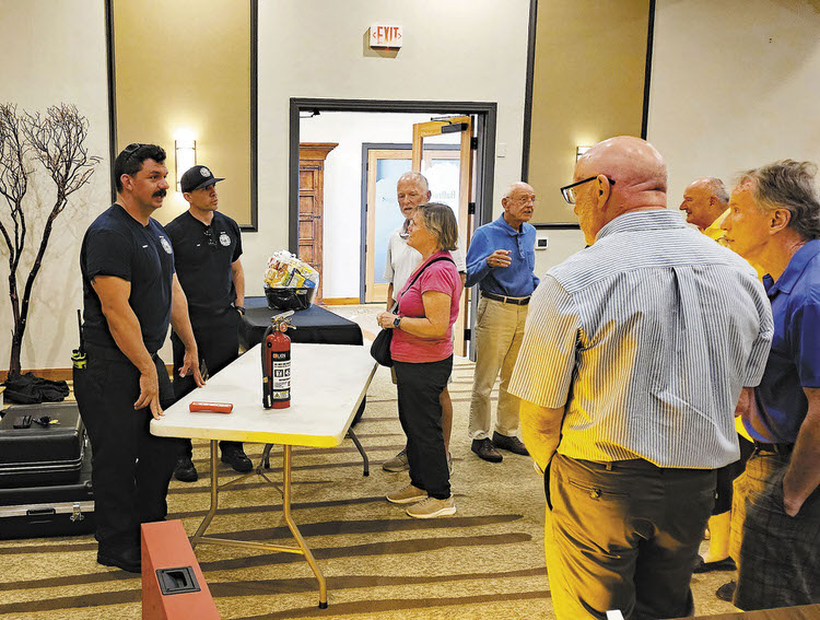 Unit 27 was privileged and honored to host employees of the Golder Ranch Fire Department (GRFD) as part of the Oct. 14 unit meeting. They presented some of the services they offer by breaking attendees into groups, with interactive presentations on CPR and defibrillators, tourniquets, fire extinguishers, and firefighting gear. They also brought along hand-out materials on fire protection, insurance considerations, how to prepare for wildfires, ambulance service plans, safety tip sheets, and more.