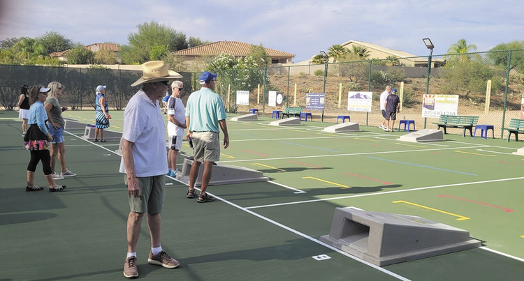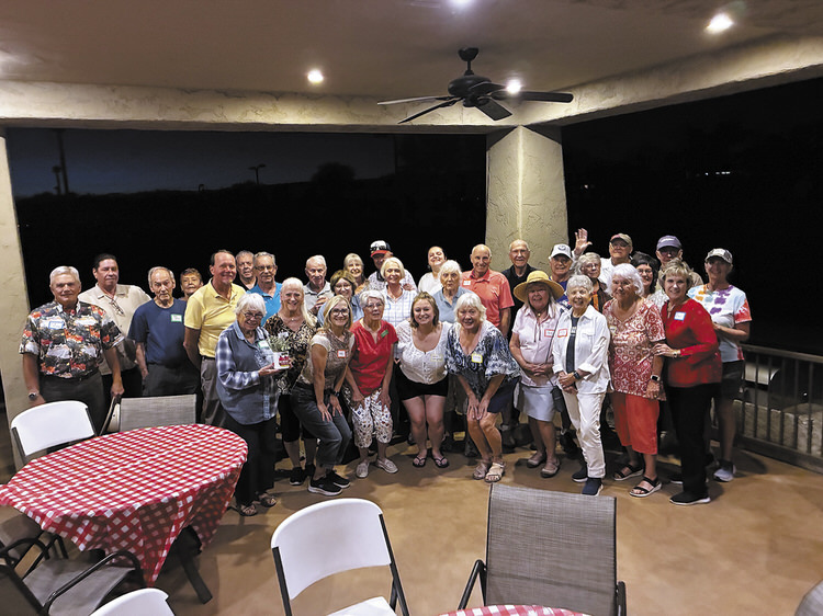 Twenty residents from Unit 42 enjoyed a friendly competition at the cornhole courts on Oct. 10. Fortunately, the rain held off until after play was over. Venita and Dennis Ransom were the lucky winners of a SaddleBrooke TWO gift certificate. Afterwards, the players gathered for an enjoyable dinner in the MountainView East Room.