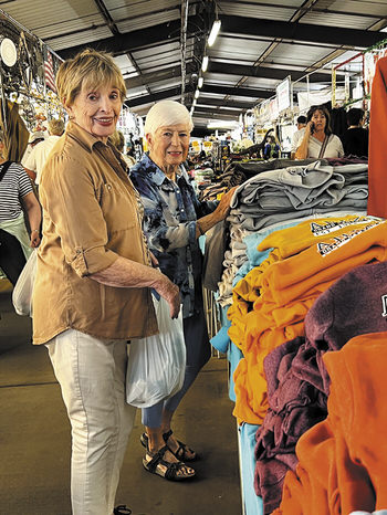 WOOO members Sheila Burke and Ruthe Burgener delight in their finds at Tiger Lily.